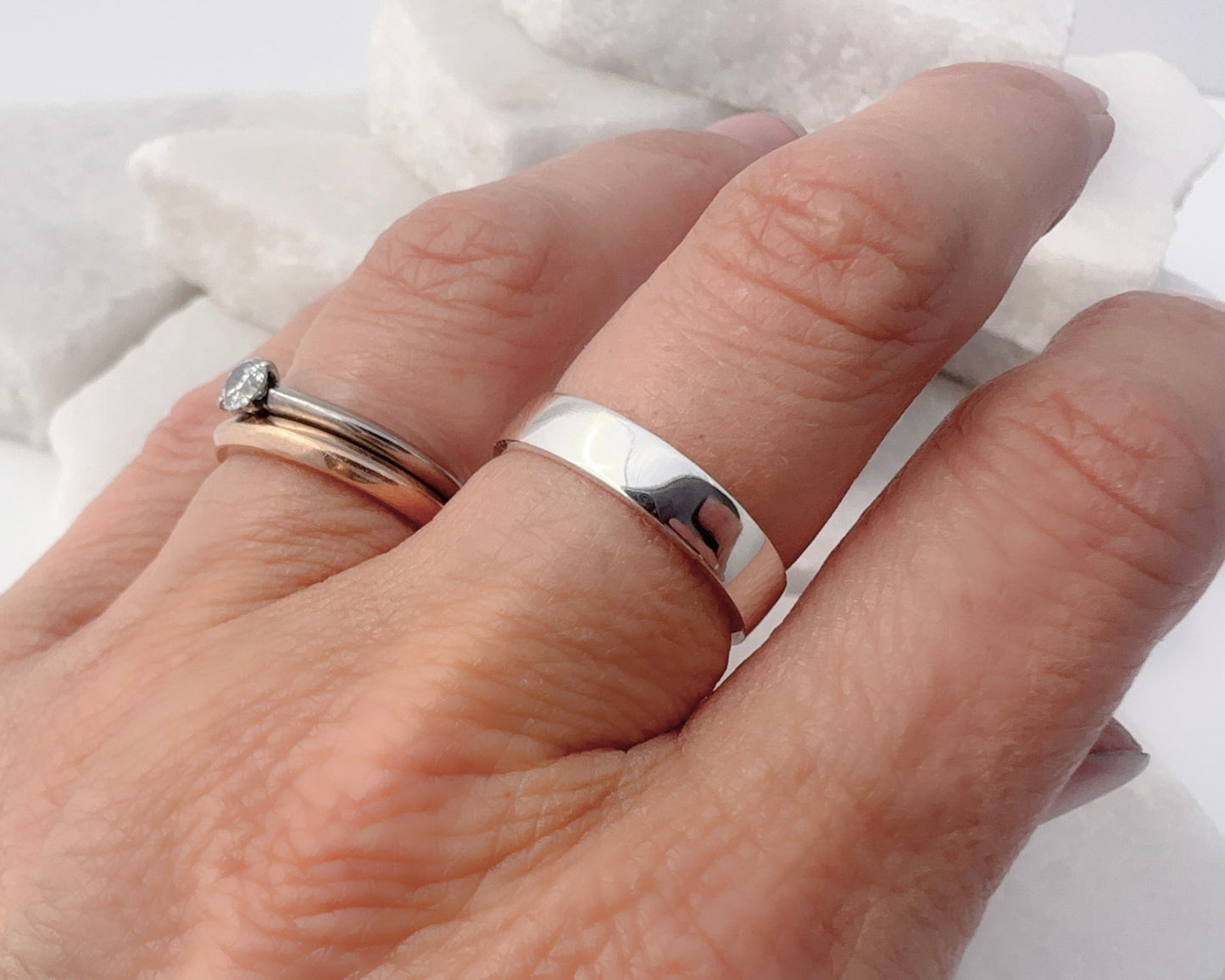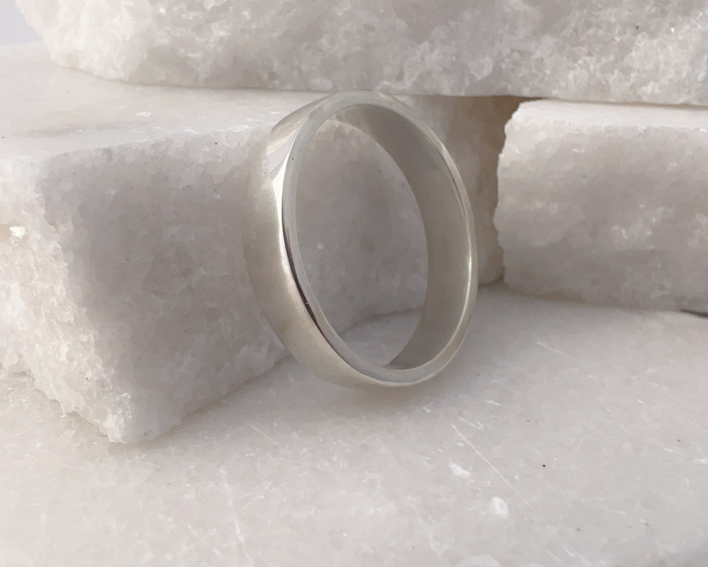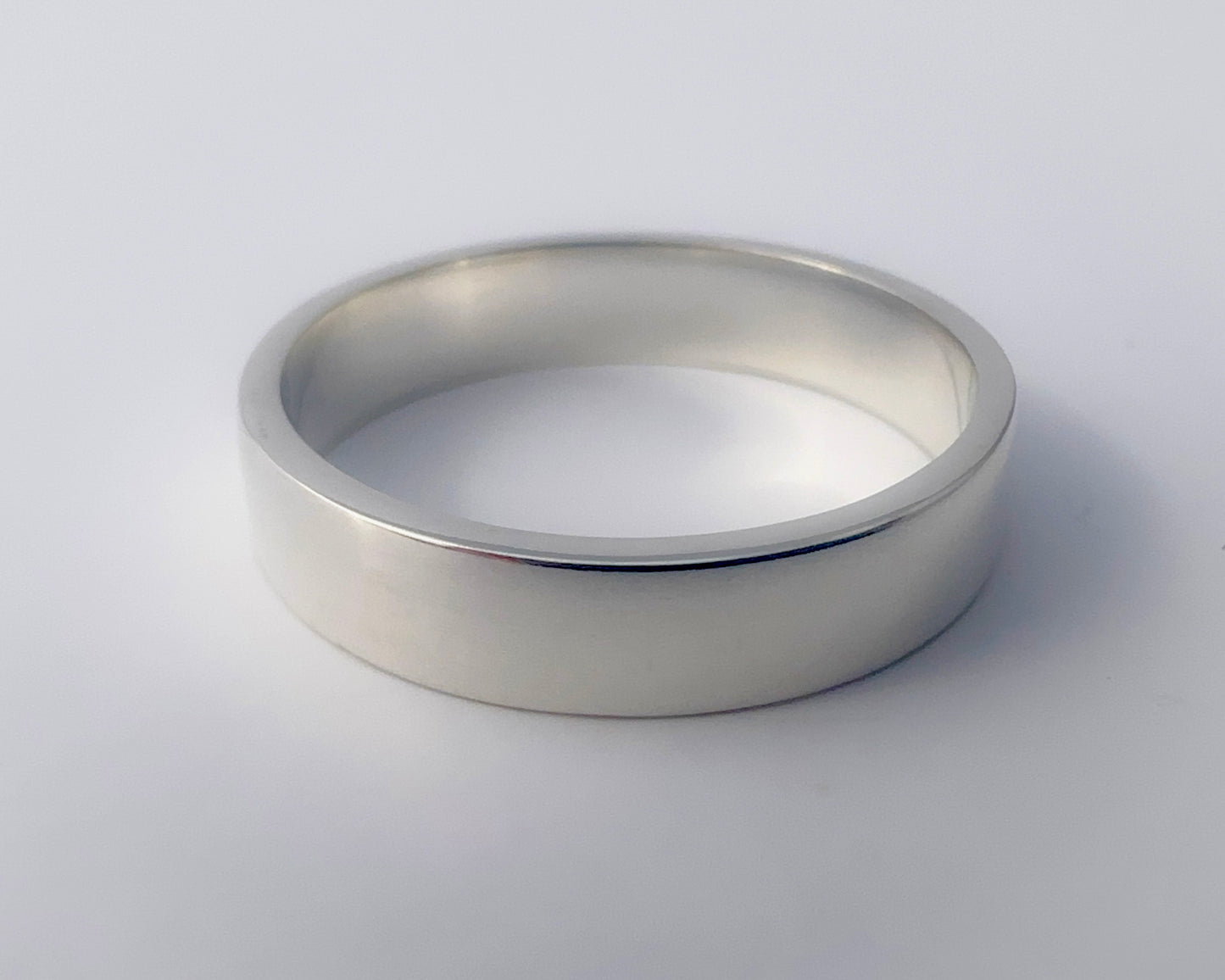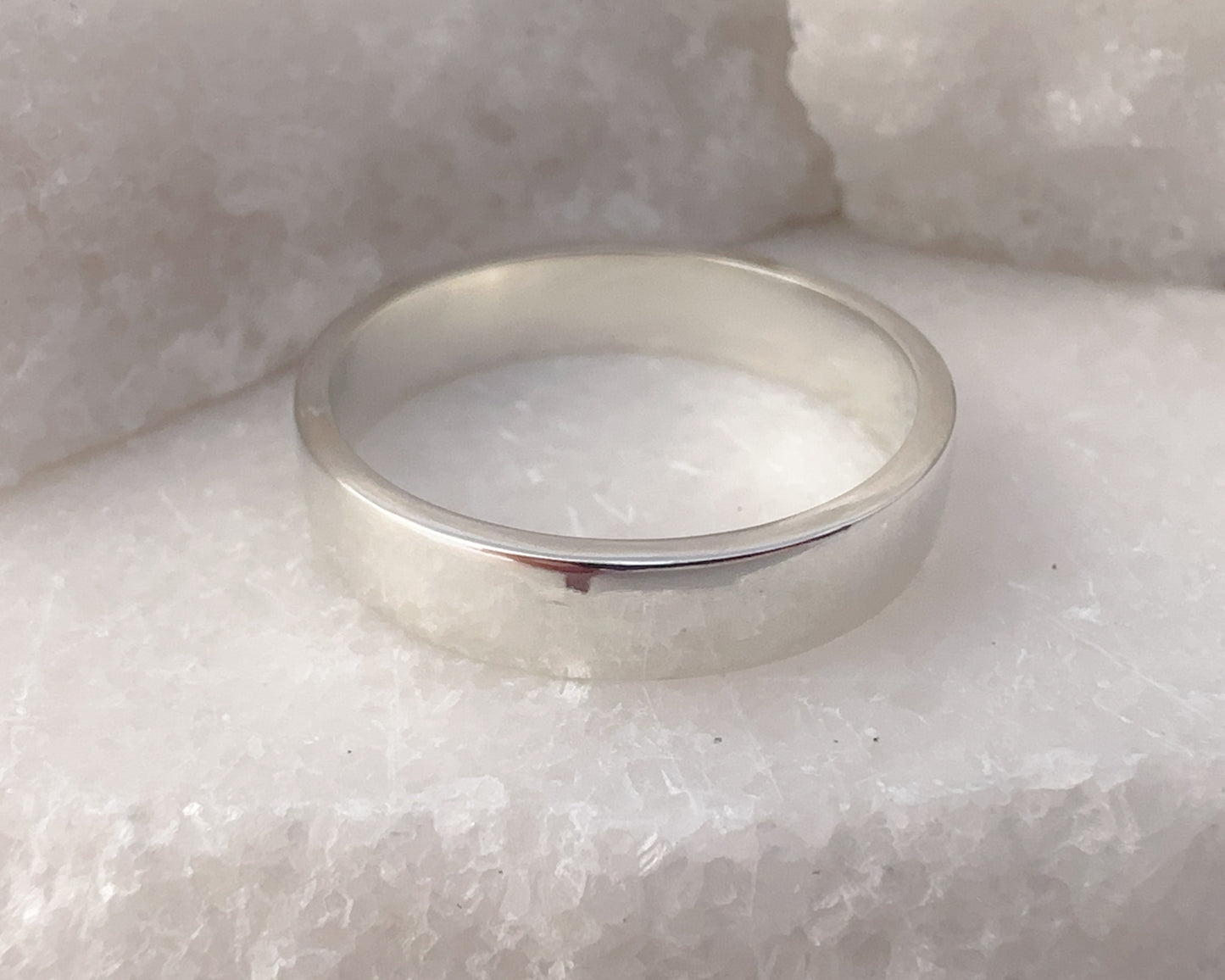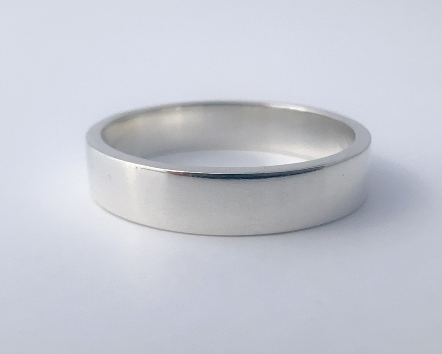 The versatile flat ring from the Horizon collection has a width of 4mm and a thickness of 1.3mm. Its smooth and shiny texture adds to its charm and complements other rings in my South Coast Jewellery line.