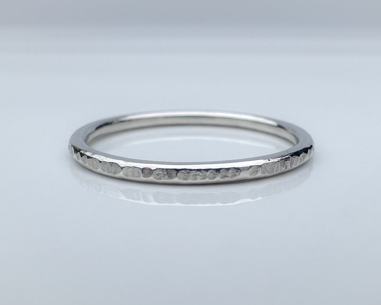 Add to your stack with our forever favourite ripple hammered skinny ring. These handcrafted stacking rings are hammered by hand, ensuring that no two are exactly the same. With UK sizes from D-Z½ available, our minimalist band will add the perfect touch to any stack. And if you need a custom size, just let us know.