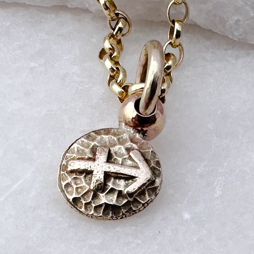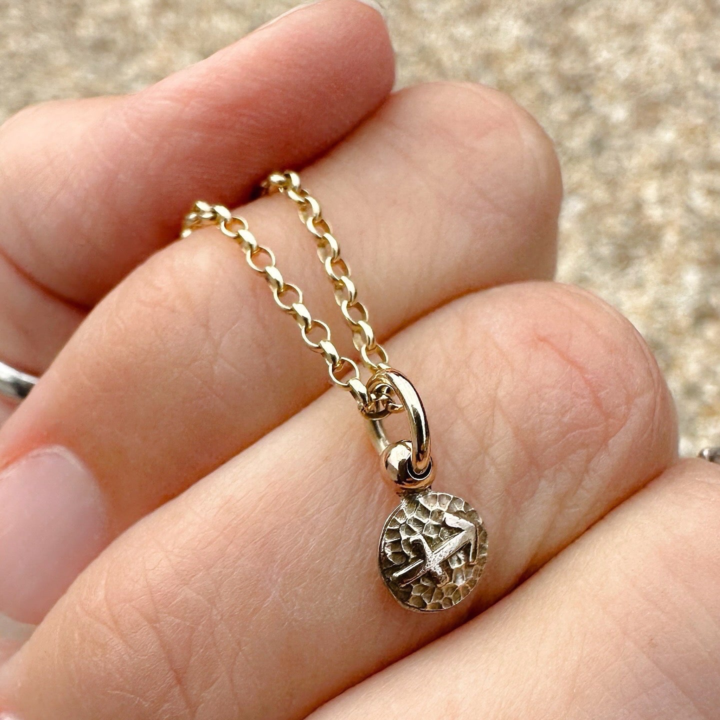 Each charm is meticulously crafted in my Devon workshop using ethically sourced, recycled gold. The process begins with melting gold to form a natural nugget, which is then shaped under pressure. Carefully finished by hand, this minimalist yet meaningful charm makes a perfect addition to your jewellery collection.