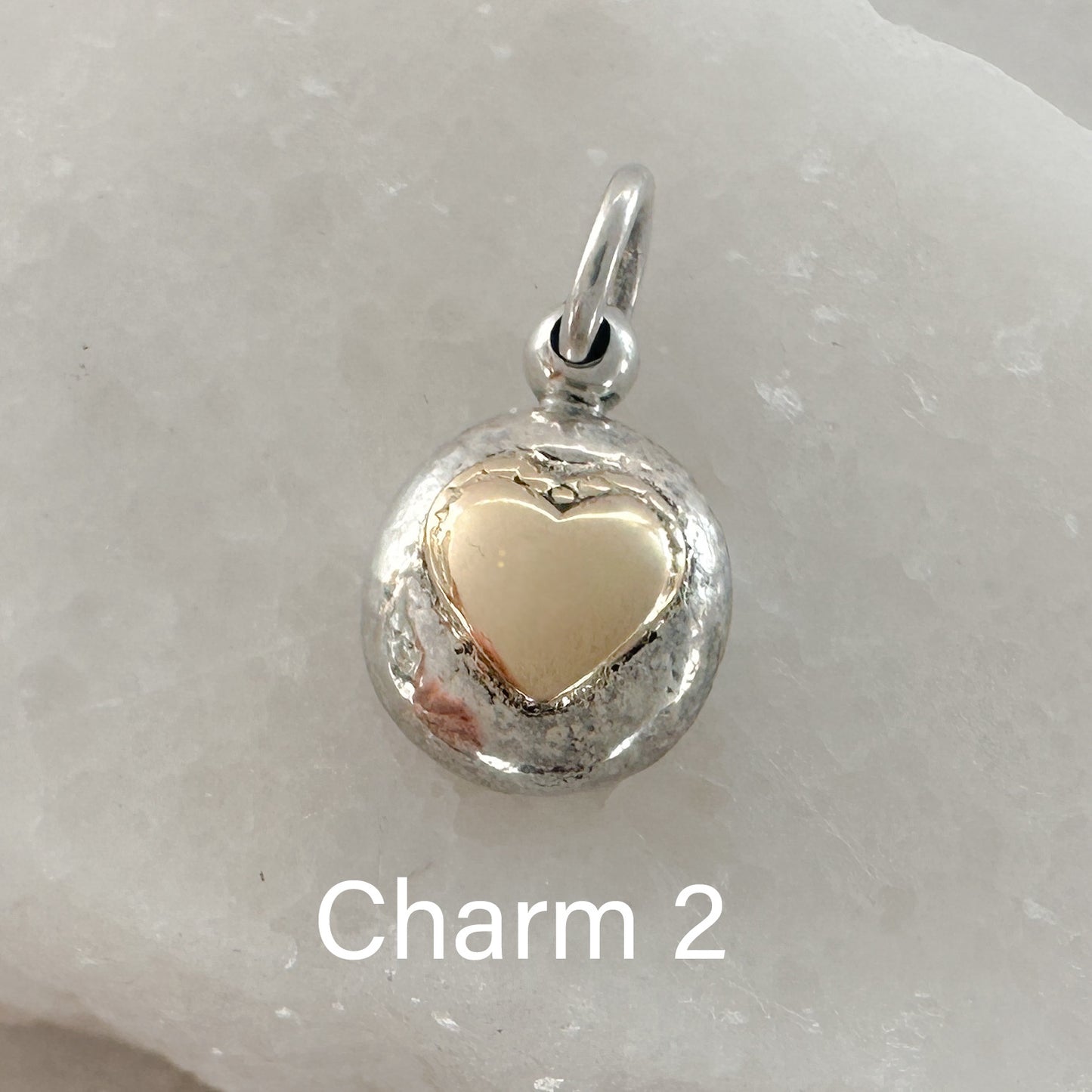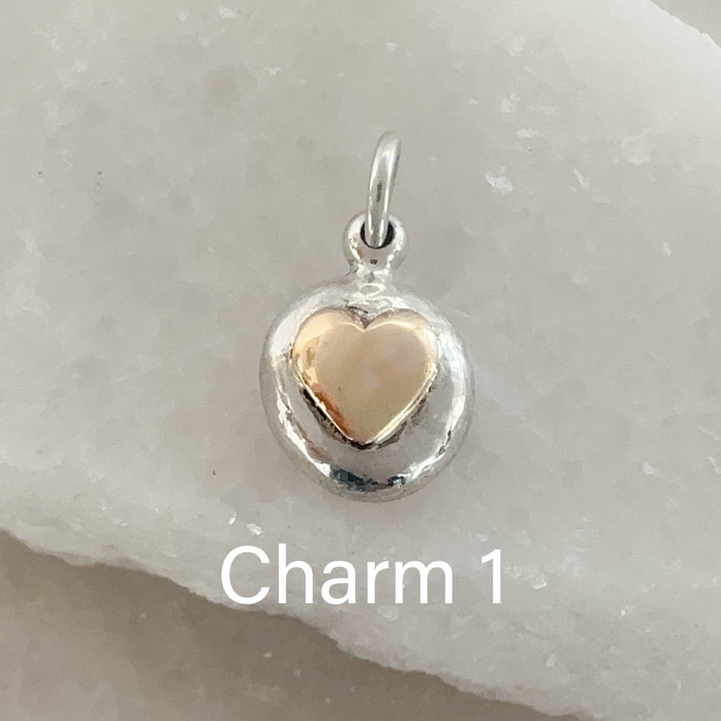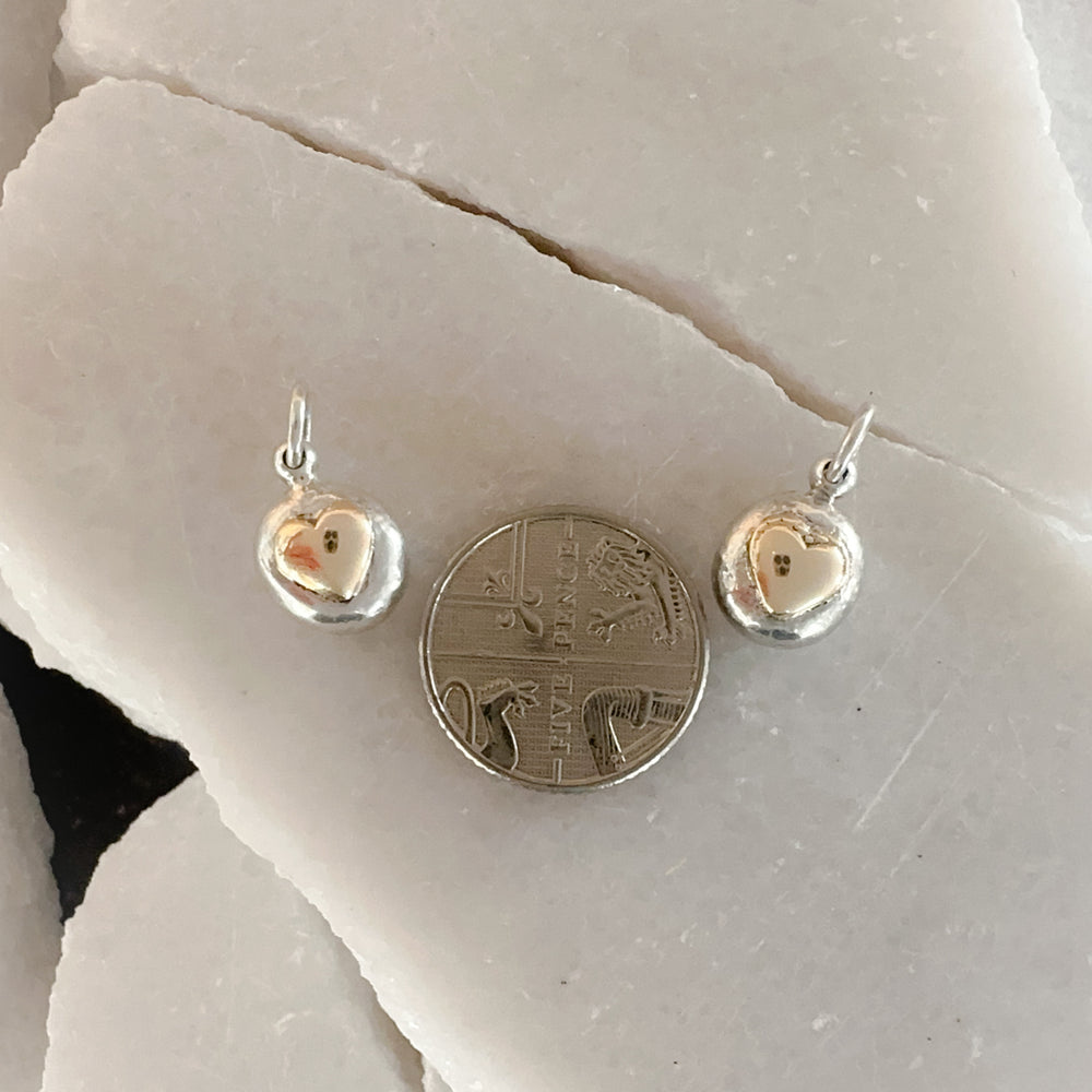 These charms have been meticulously crafted by me in my Devon workshop, using ethically sourced, recycled gold and silver. The process begins with melting the metal to form natural nuggets. The gold nuggets are then shaped under pressure and carefully finished by hand before being soldered onto the larger silver nuggets. Due to the nature of the making process, these charms may embrace natural inclusions that add to their character and individuality! You will receive the actual charm chosen from the pictures in the listing.